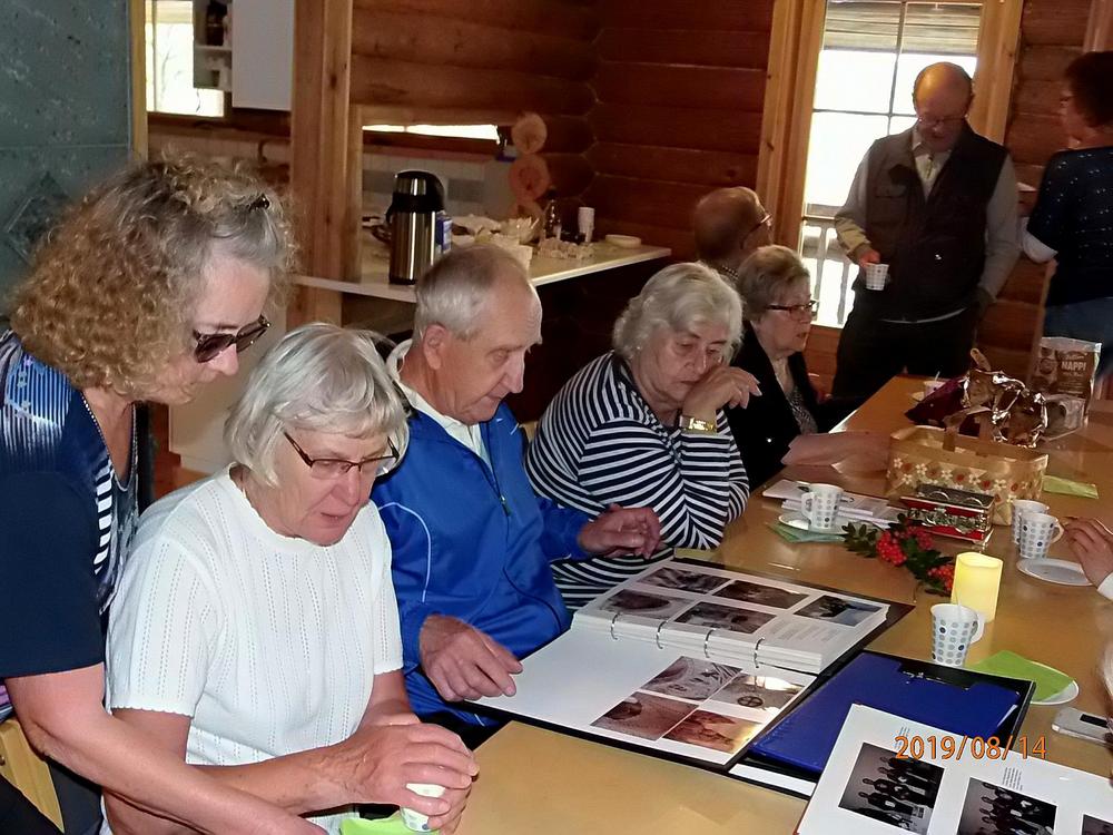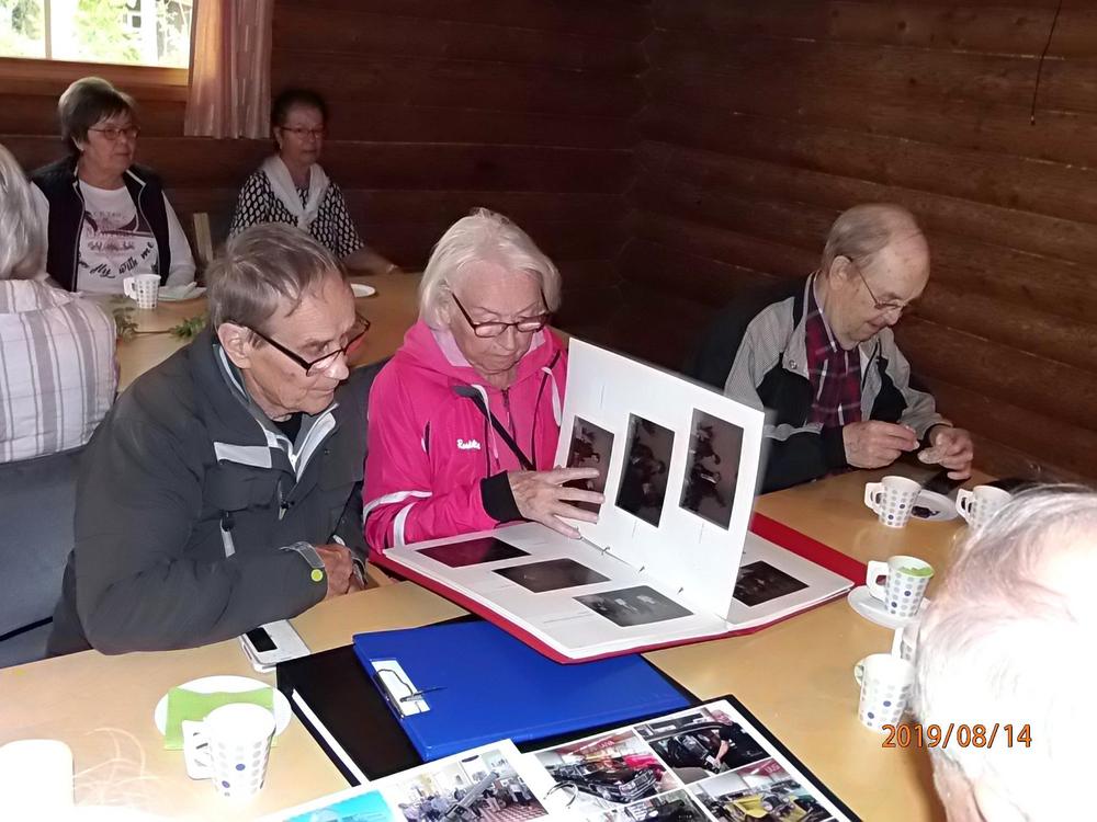 Ilkka ja Ritva tutkivat leikekirjaa (Sepon tekemää) Ja Risto myös istuu lähellä
