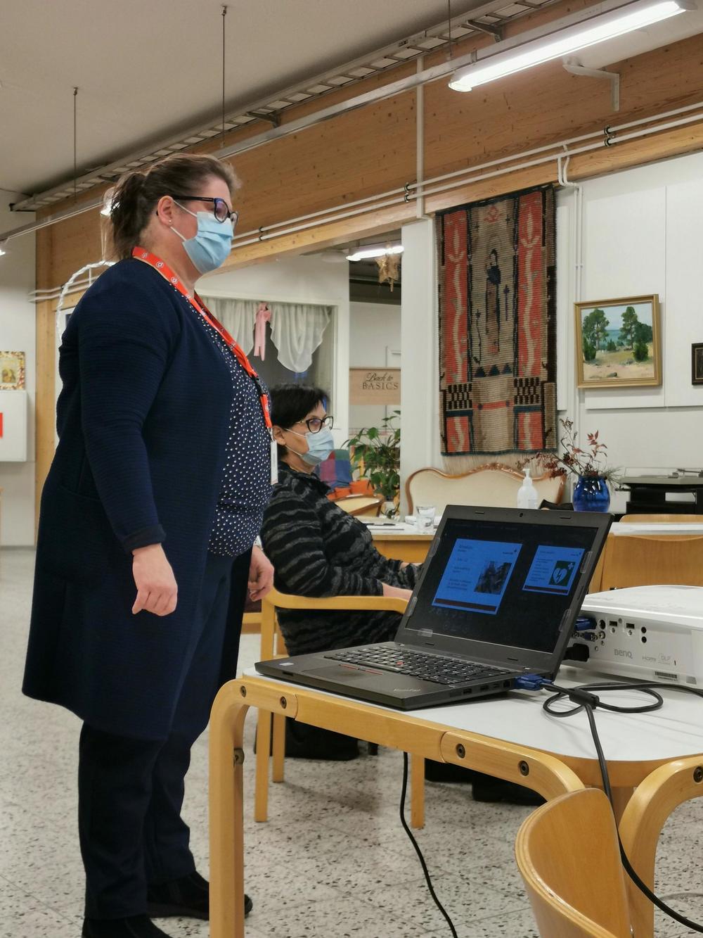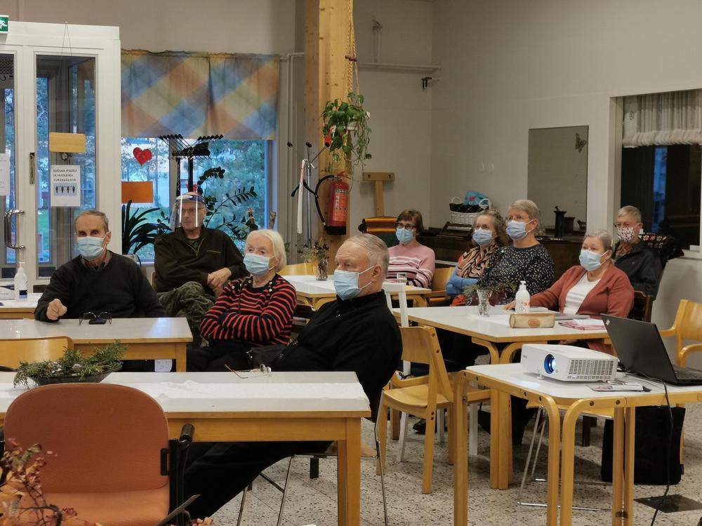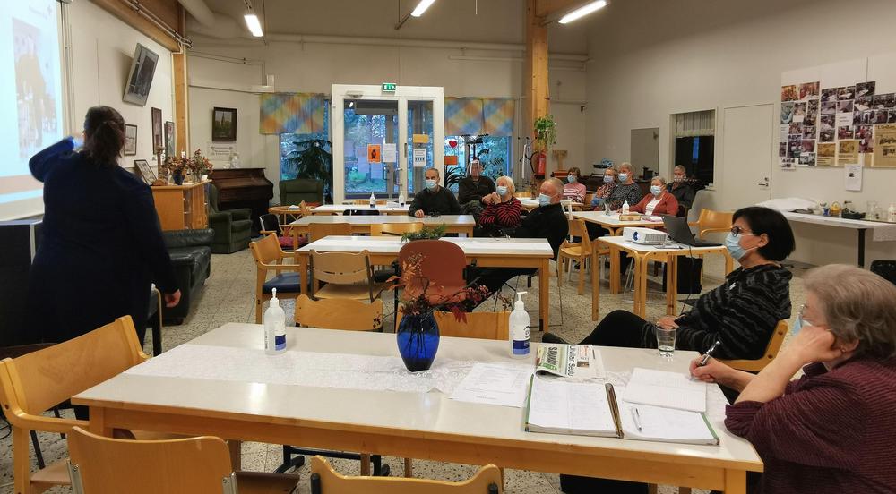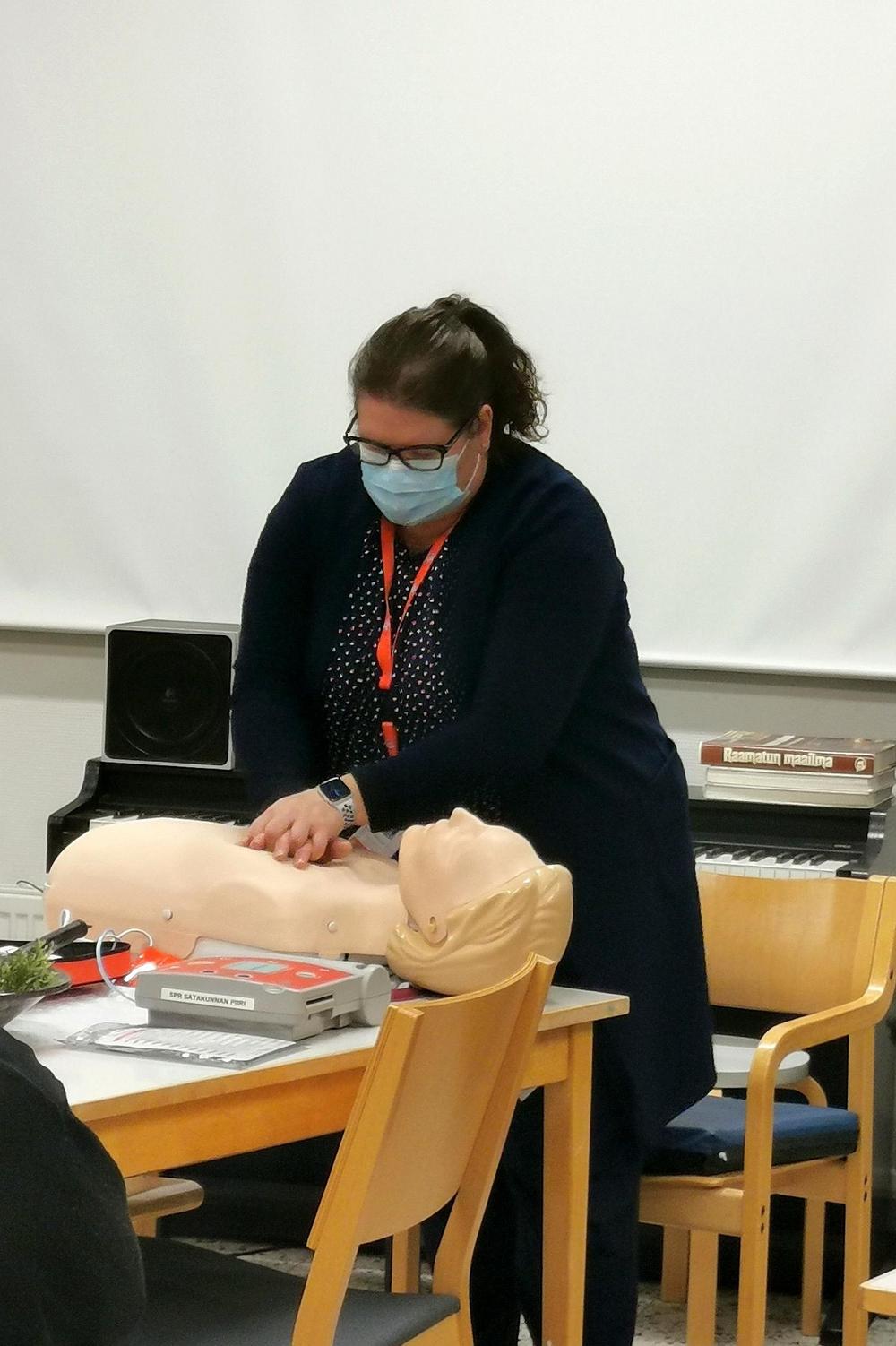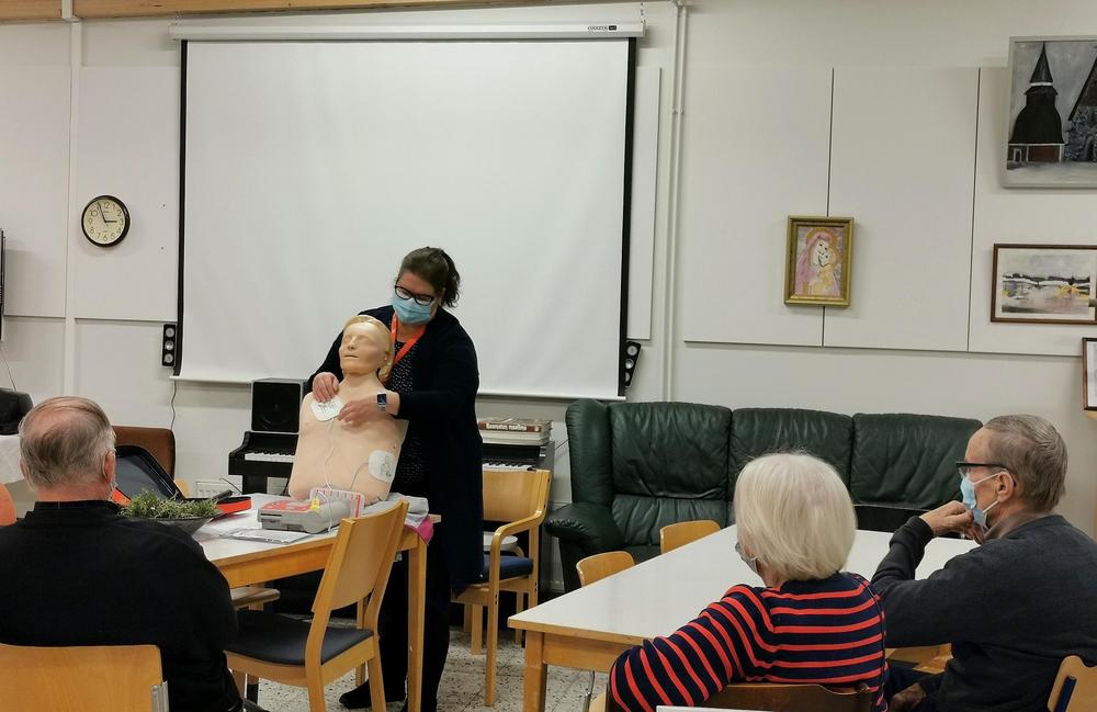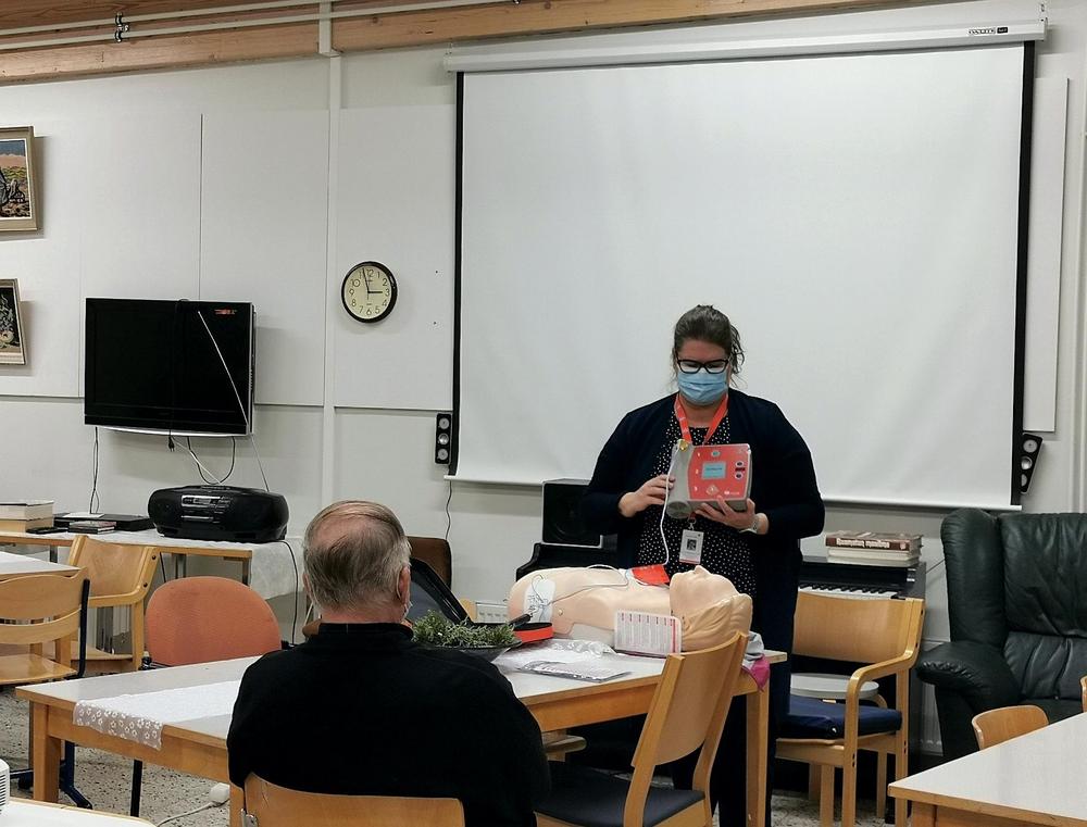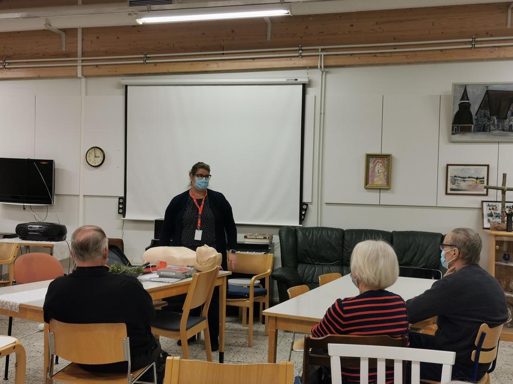 Järjestimme ensiapukoulutustilaisuuden kohtaamispaikka Santraan, missä SPR:n kouluttaja, järjestökehittäjä Tiina Hiidenoja-Sirèn kertoi meille rintakipukohtauksen ja aivoverenkiertohäiriön sairaskohtausten ensiavusta. Mitä voin tehdä, jos/kun läheiseni saa sairaskohtauksen. Hätänumero 112 on jokaisen muistissa, lisäksi tulee muistaa FAST kirjainsarja, Face (kasvot), Arms (kädet), Speecch (puhe), Time (aika). Ja ensiavussa tiedon lisäksi nopeus on valttia. Saimme ’kädestä pitäen’ havainnollisen esityksen myös sydäniskurin eli defibrillaattorin käytöstä – laitetta ei tule pelätä, laite 'puhuu' eli ohjeistaa miten tulee toimia. Kuvat Oili Roine
