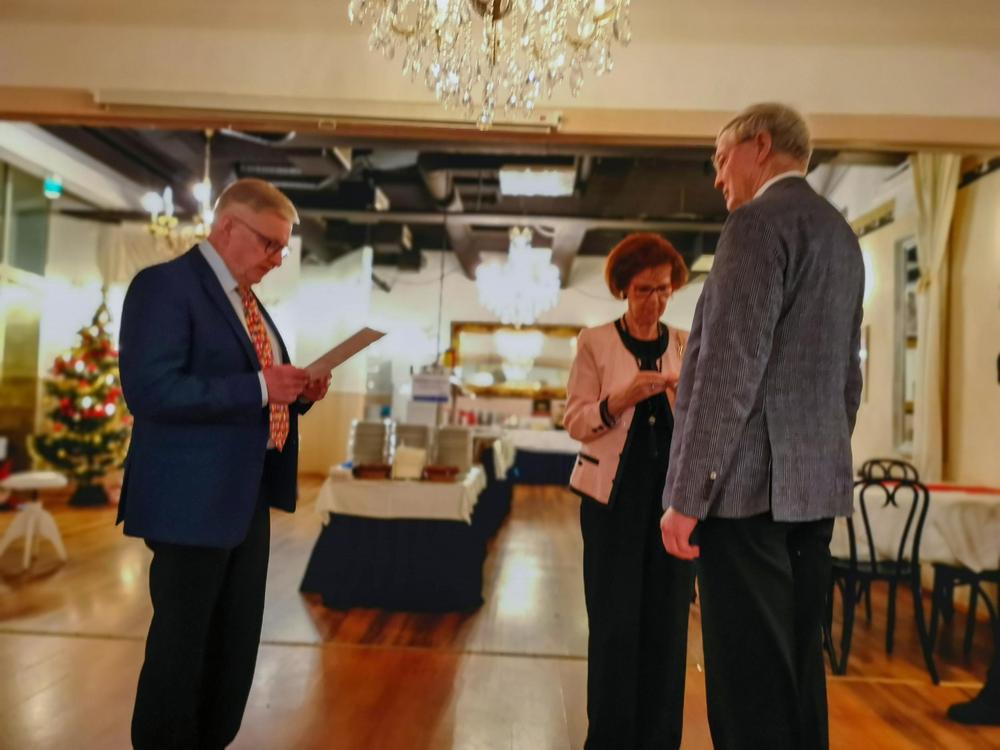 Vietimme perinteistä joulujuhlaa Kokkikaksikossa koronarajoitusten mukaisesti. Saimme nauttia musiikkiesityksistä, jäsenemme Veikko Naire soitti viulua Eeva Lindholmin säestyksellä ja Taneli Nurmenniemi lauloi säetäen kitarallaan. Vietimme hiljaisen hetken sytyttäen muistokynttilät muistaen poisnukkuneita jäseniämme. Jouluevankeliumin ja jouluruuan jälkeen ohjelmassa seurasi Tiernapojat lauluryhmän avustamina sekä kuulimme Raija Tiitisen esittämänä Sinikka Nopolan pakinoita. Lopuksi saapui Eero-tonttu, joka laittoi meidät ensiksi reippaasti jumppaamaan ja jakoi lahjat sen jälkeen. Lauloimme vielä joululaulujakin välillä. Saimme oikein jouluisen mielen – vaikka maskit saattoivat vähän haitata välillä ’tahtia’.