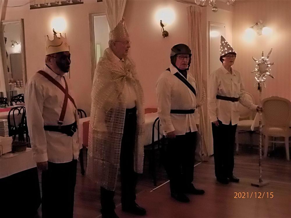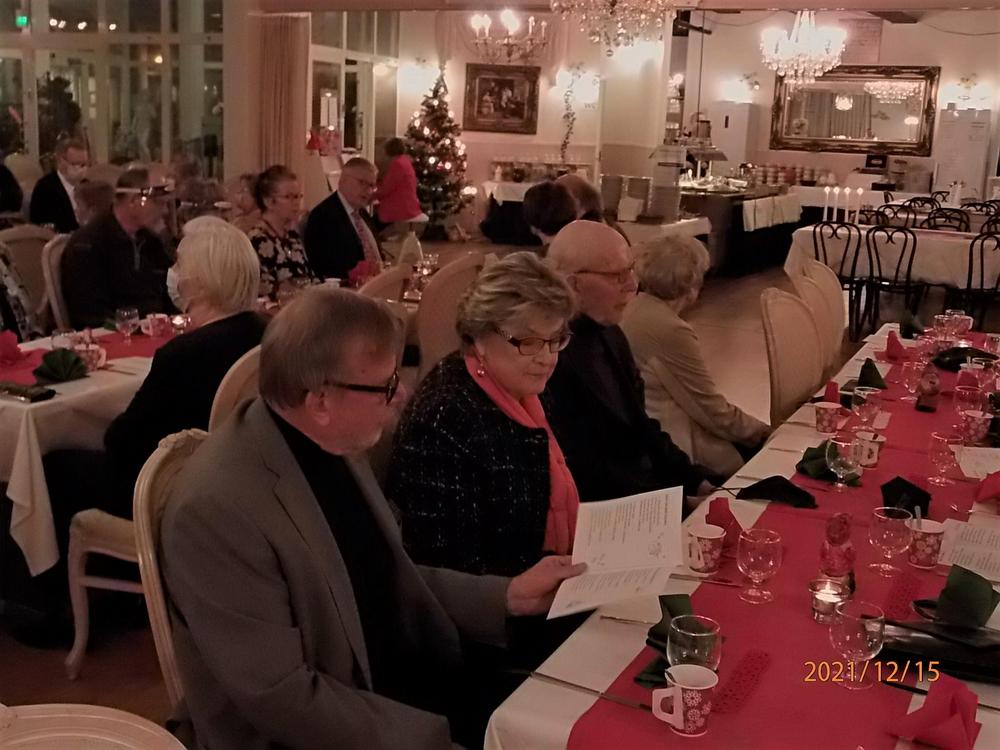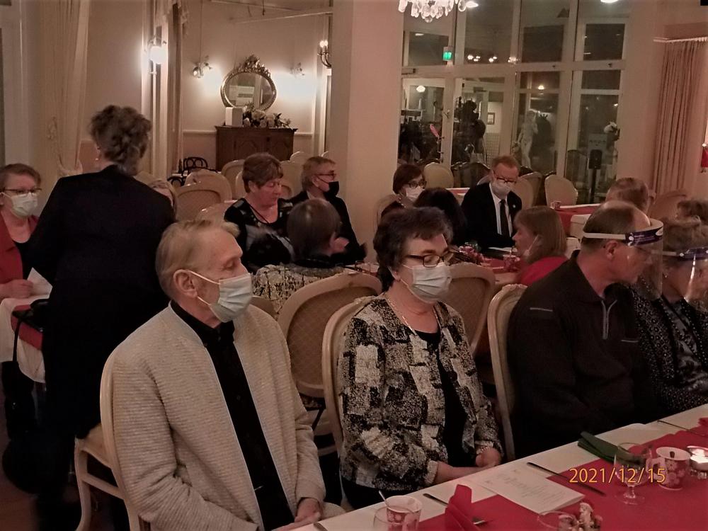 Vietimme perinteistä joulujuhlaa Kokkikaksikossa koronarajoitusten mukaisesti. Saimme nauttia musiikkiesityksistä, jäsenemme Veikko Naire soitti viulua Eeva Lindholmin säestyksellä ja Taneli Nurmenniemi lauloi säetäen kitarallaan. Vietimme hiljaisen hetken sytyttäen muistokynttilät muistaen poisnukkuneita jäseniämme. Jouluevankeliumin ja jouluruuan jälkeen ohjelmassa seurasi Tiernapojat lauluryhmän avustamina sekä kuulimme Raija Tiitisen esittämänä Sinikka Nopolan pakinoita. Lopuksi saapui Eero-tonttu, joka laittoi meidät ensiksi reippaasti jumppaamaan ja jakoi lahjat sen jälkeen. Lauloimme vielä joululaulujakin välillä. Saimme oikein jouluisen mielen – vaikka maskit saattoivat vähän haitata välillä ’tahtia’.