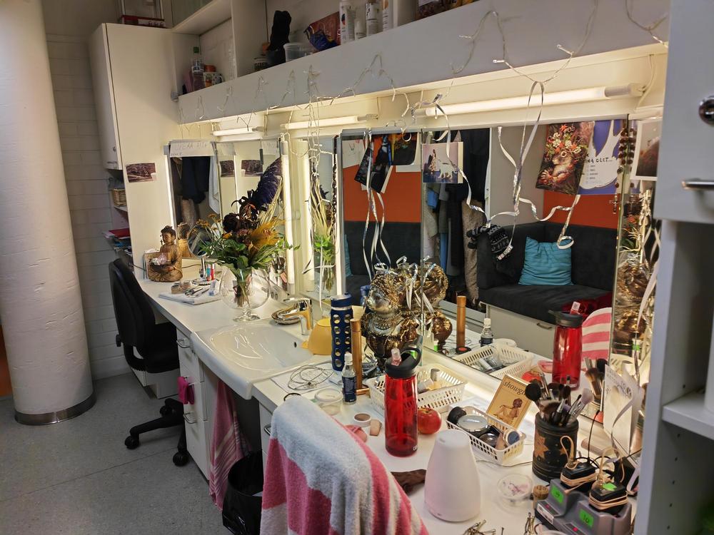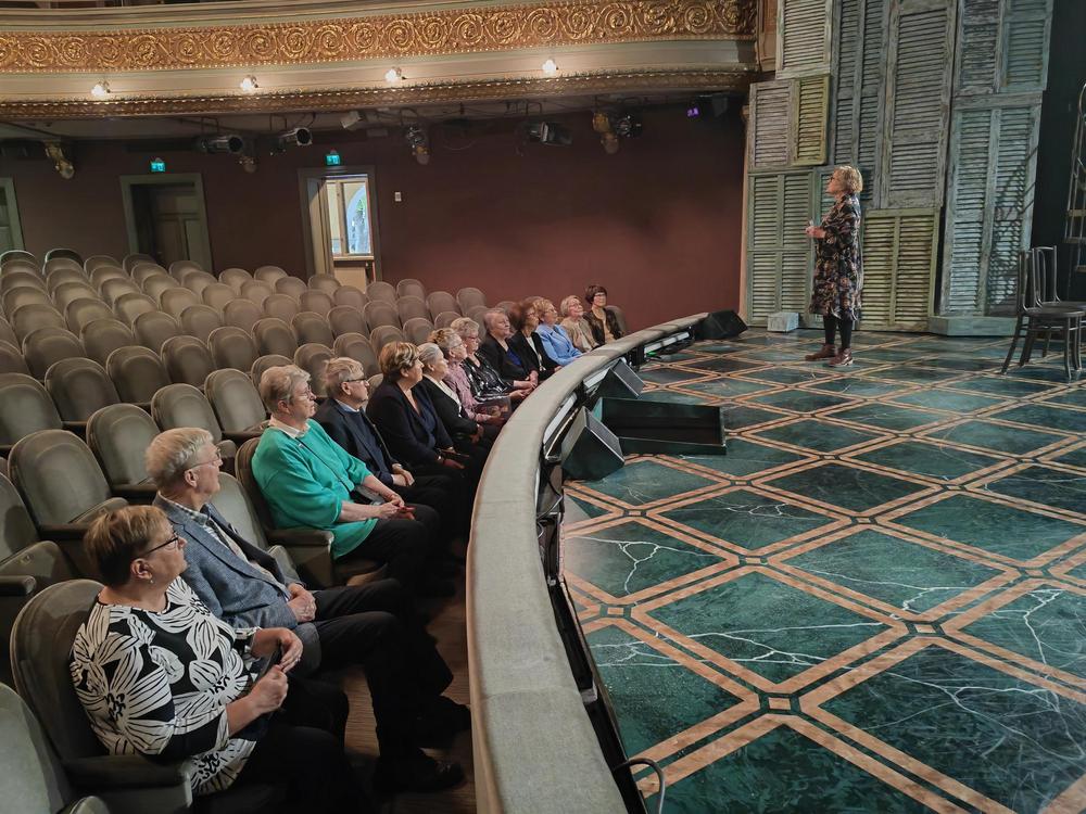 Esityksen jälkeen pääsimme tutustumaan teatterin 'taakse' eli lavasteisiin, ompelimo-, maskeeraus- ja taukotiloihin sekä varastojen 'aarteisiin'. Mielenkiintoisen ja vauhdikkaan esittelytuokion piti Aulikki Harju.