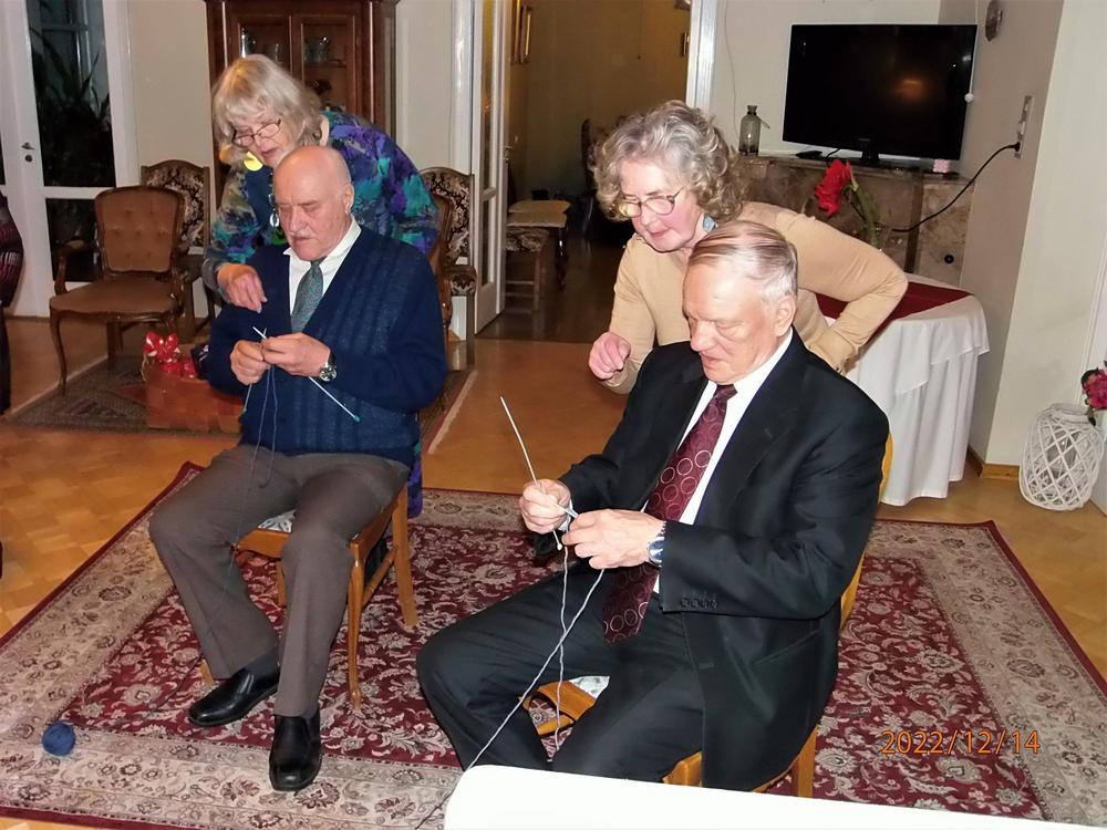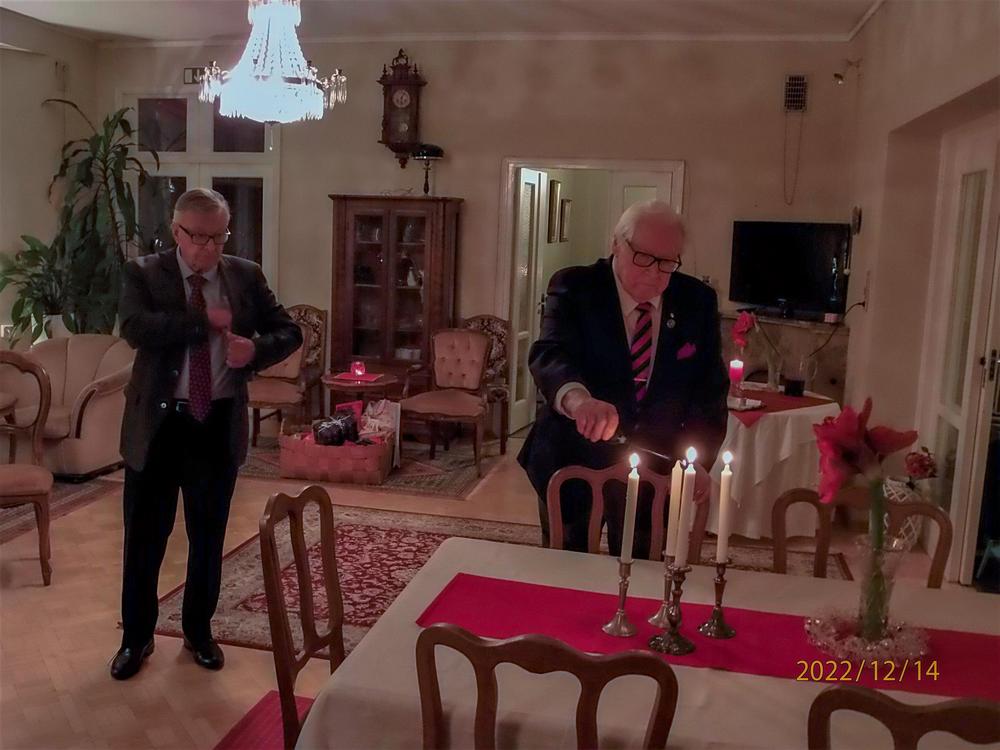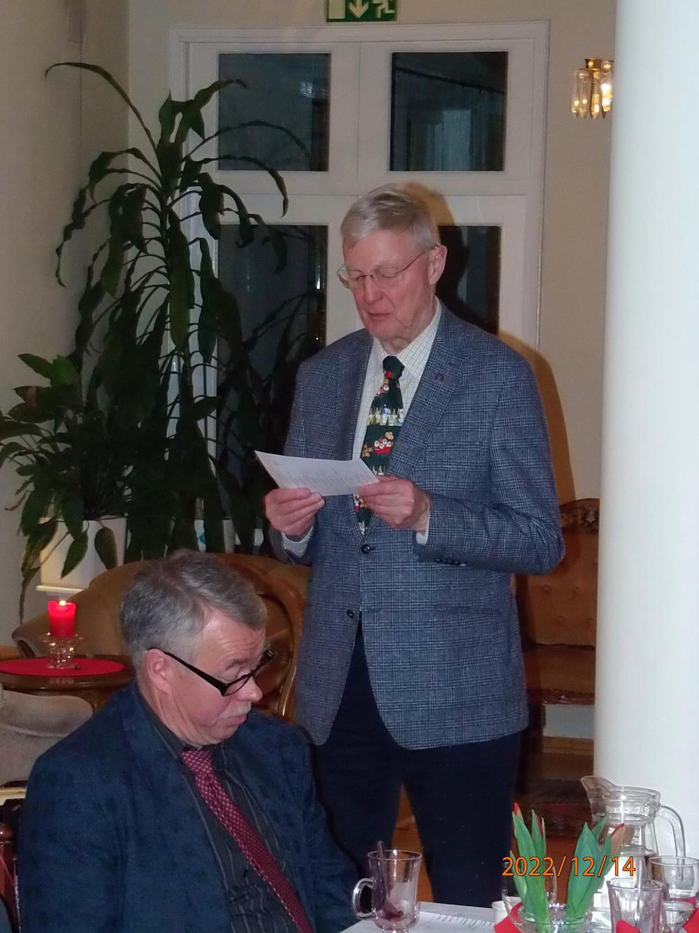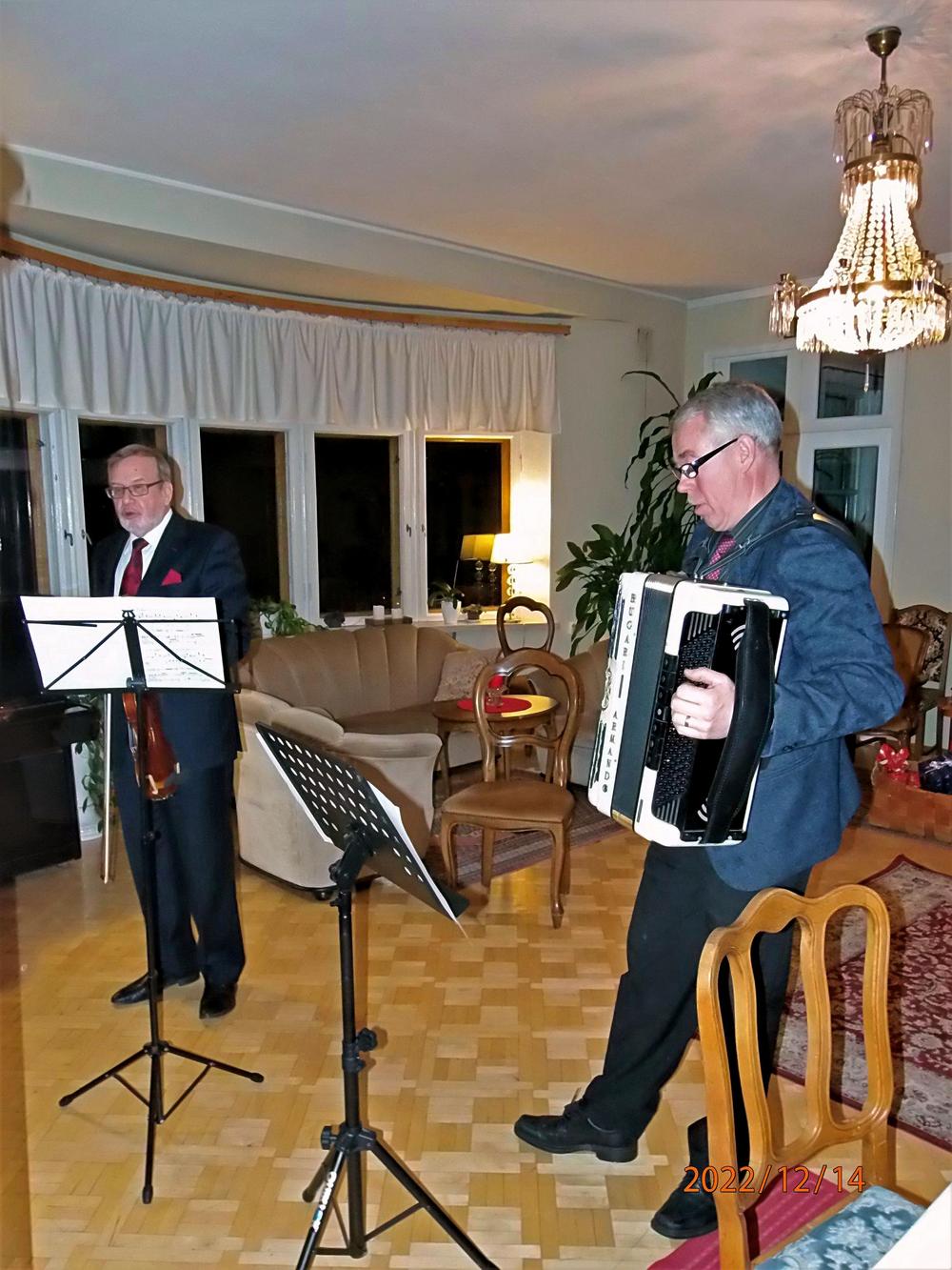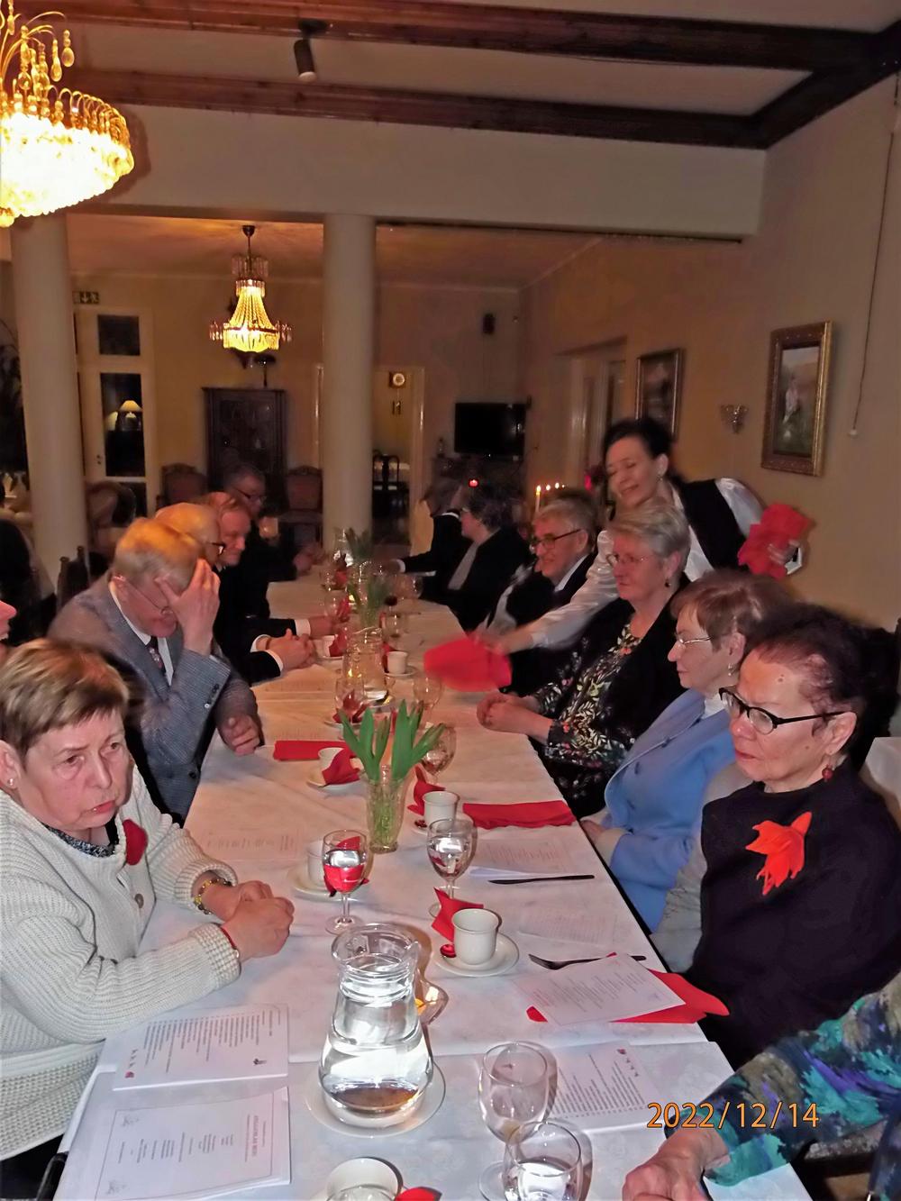 Joulujuhlaa vietimme Villa Hellerannan tiloissa. Ohjelmassa oli vähän uutta sekä vähän vanhaa. Kutsuimme haitarivirtuoosi Vesa Formusen mukaan juhlaamme, hän soitti joululauluja iloksemme sekä säesti yhteislaulut. Vietimme hiljaisen hetken poisnukkuneiden jäsentemme muistoksi, Matti Naskali sytytti kynttilät. Jouluevankeliumin ja jouluruuan jälkeen ohjelmassa seurasi Veikko Nairen viululla esittämä tango elokuvasta Naisen tuoksu Vesan säestämänä.