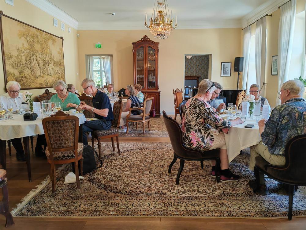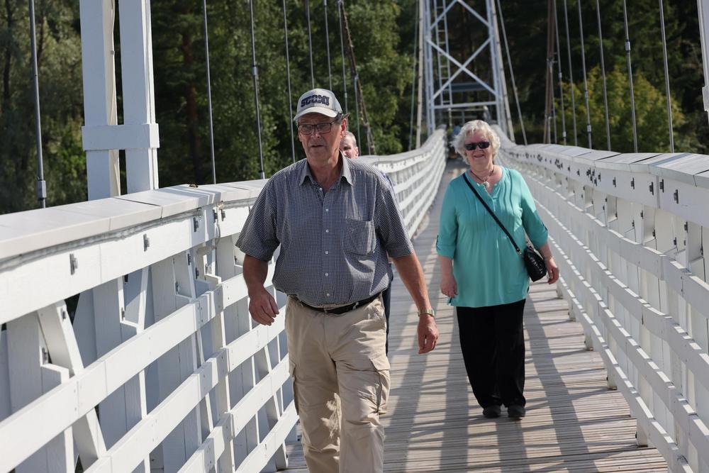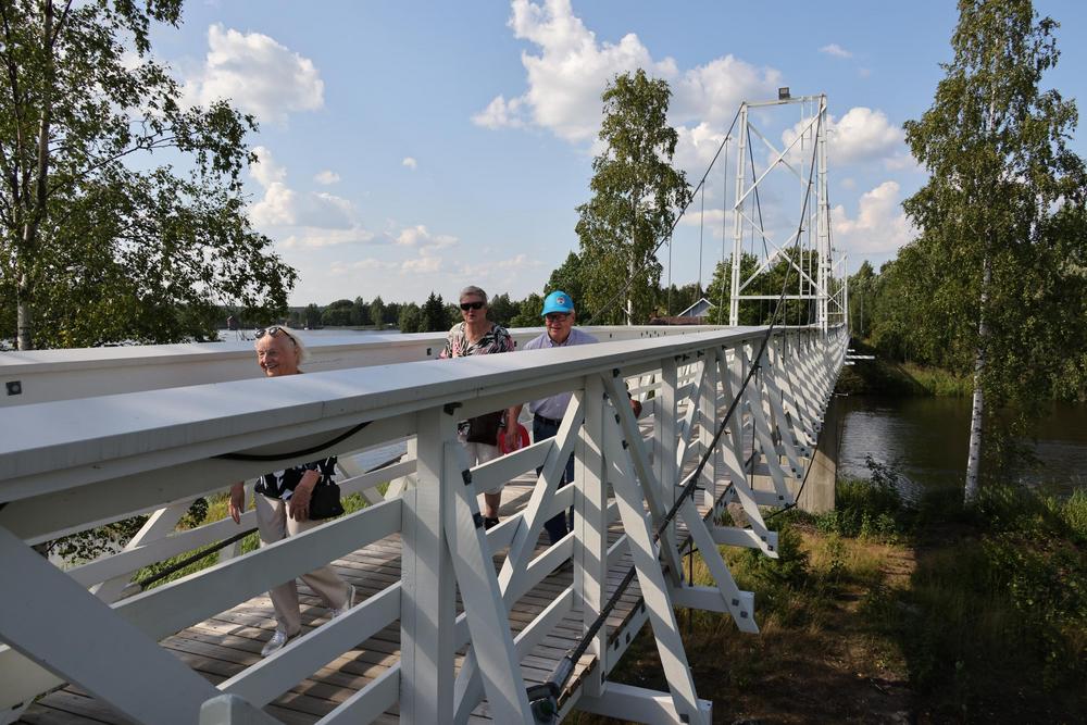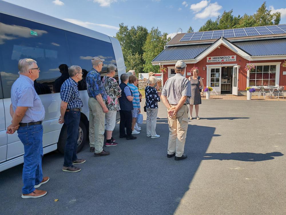Retkipäivämme suuntautui ensin Huittisiin Mattilan Marjatilalle, jossa saimme hyvän katsauksen nykypäivän marjaviljelyyn sekä tilan monimuotoiseen toimintaan. Kahvittelun jälkeen suuntasimme Sastamalan Keikyään, jossa sijaitsee talkoovoimin uusittu kulttuurihistoriallisesti arvokas, Suomen pisin puinen riippusilta. Oppaanamme toimi sillan kupeessa kasvanut, korjausprojektiin osallistunut jäsenemme Heikki Saari. Heikki ja vaimonsa Sirkka huolehtivat meidän matkalaisten nestetasapainosta helteisessä matkapäivässämme. Päivän päätteeksi suuntasimme historiaa huokuvaan 100-vuotiaaseen, hienosti entisöityyn Tyrvään pappilaan, jossa saimme kuulla pappilan historian ja nykytilan. Hienossa pappilan salissa nautimme kolmen lajin päivällisen pöytiin tarjoiltuna. Mielenkiintoiset kohteet, aurinkoinen sää (osin jopa tukalan lämmin, onneksi bussimme jäähdytys toimi erinomaisesti), hyvä seura ja ruoka – antoisa matkapäivä.