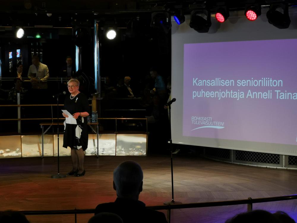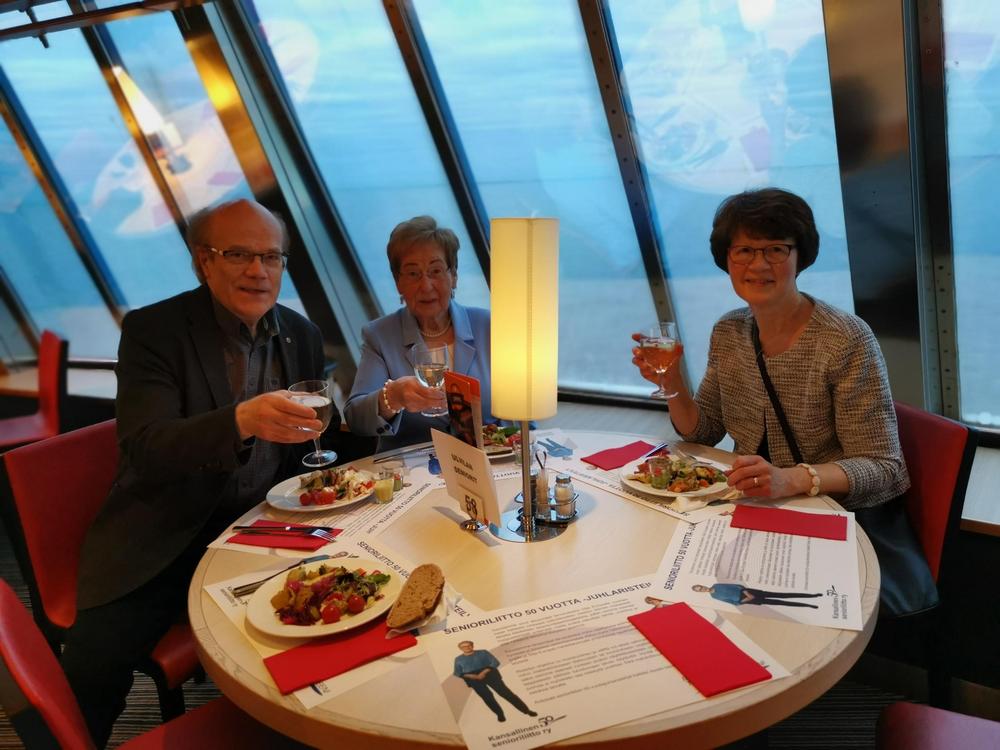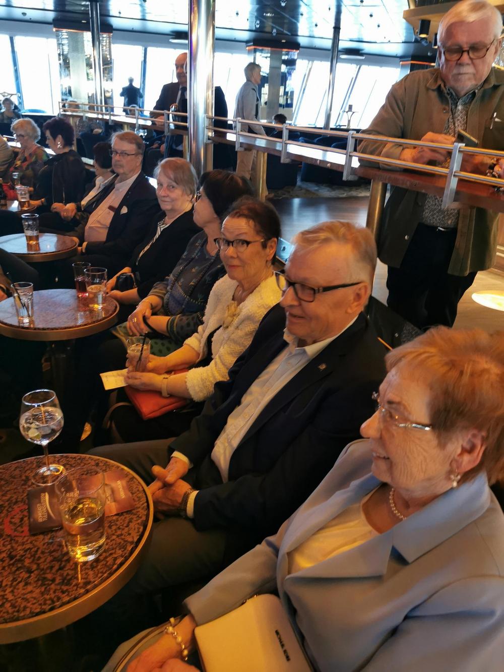 Senioriliiton 50 vuotis juhlaristeilylle osallistuimme Ulvilasta 12 hengen voimin. Laivalla oli tarjolla runsain mitoin ohjelmaa, jokaiselle jotain. Laiva oli täynnä senioreita, puheen sorinaa joka puolella ja väkimäärästä johtuen myös pientä ’ruuhkaa’ paikoitellen.