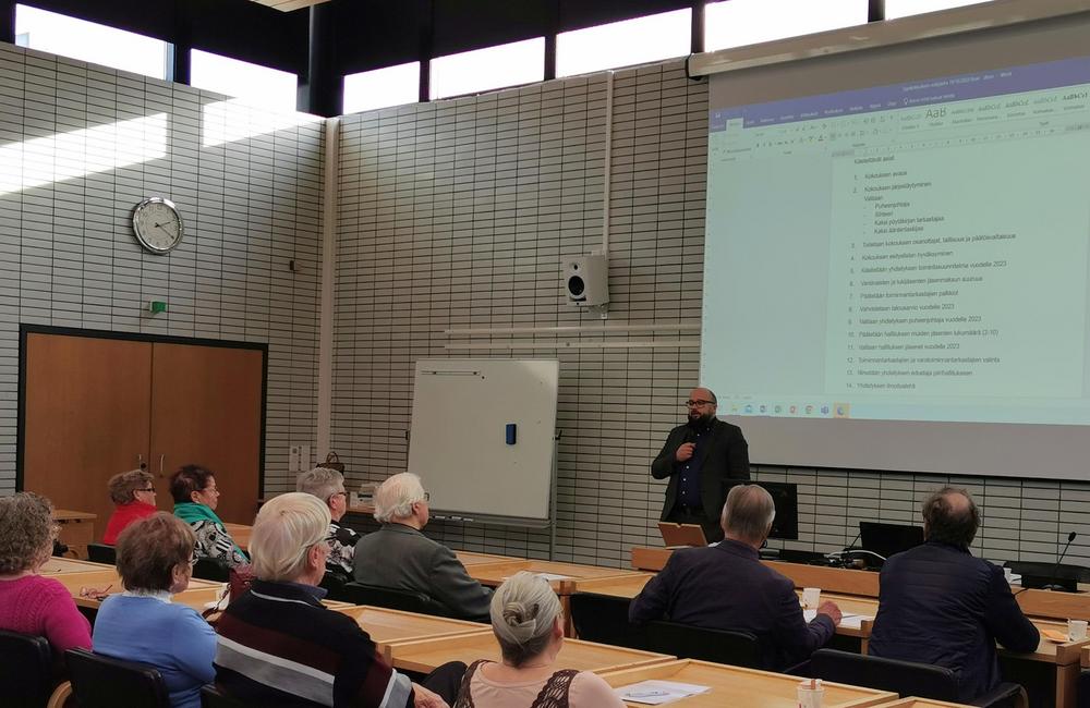 Sen jälkeen kaupunginjohtaja Mikko Löfbacka kertoi Ulvilan kaupungin kuulumisia ja uuden hyvinvointialueen vaikutuksista kuntalaisten elämään. Ulvilan taloudellinen tilanne näyttää ihan kohtuulliselta. Jos kaikki menee hyvin, niin sosiaali- ja terveyspalvelut toimivat tammikuussa samalla tavalla kuin nytkin asiakkaan kannalta, eivätkä taustalla olevat suuret organisaatiomuutokset näy asiakkaille.