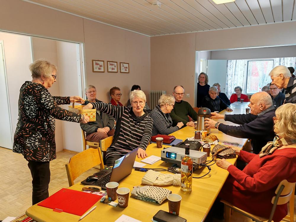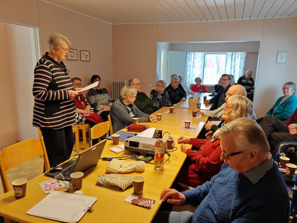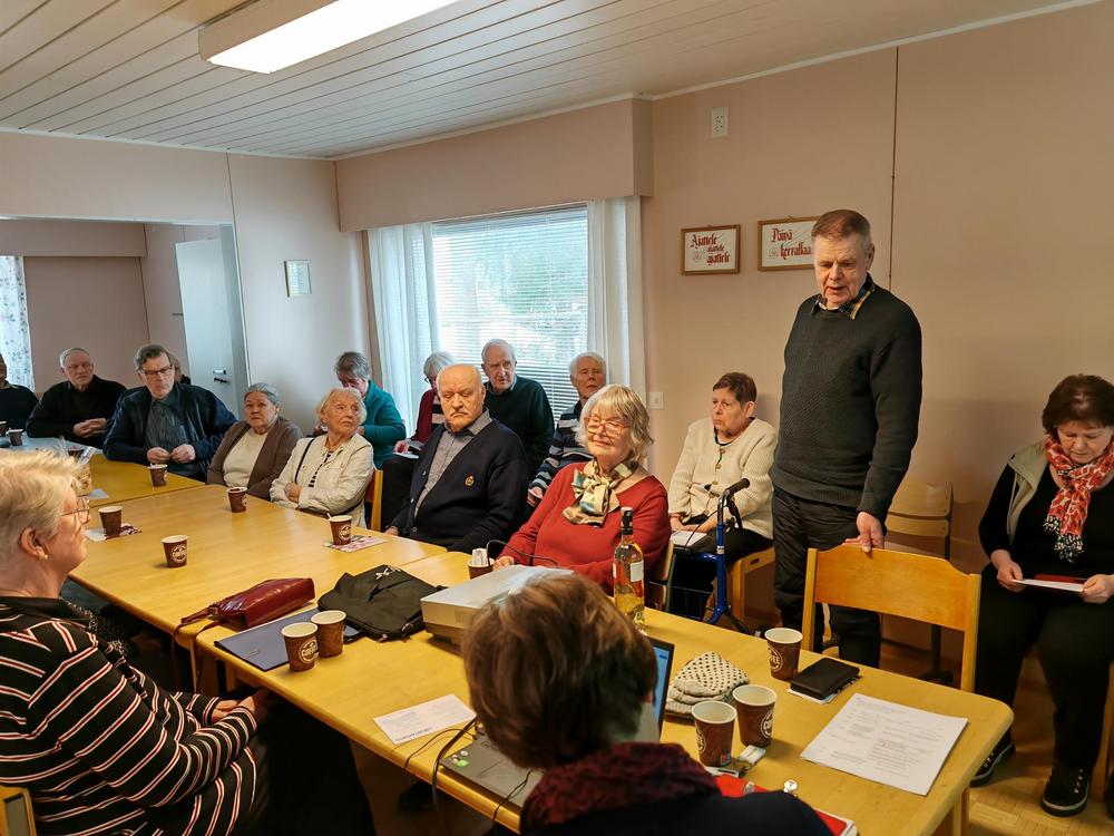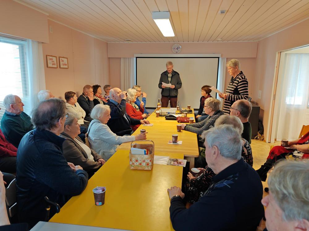 Maalikuun kk-tapaaminen aloitettiin Hulivilissä totutusti kahvittelulla ja arpojen myynnillä. Päivän aiheena oli ’Maan korvessa kulkevi – ja vähän pellollakin’. Kuulimme Tiusasten tarinan eli jäsenemme Pekka ja Sirkka Tiusanen kertoivat meille elämänsä tarinaa kivasti ja elävästi vuororepliikein. He olivat hyvin treenanneet ja Pekka totesi heti alkuun, että kuvia ei ole eikä mitään muutakaan materiaalia esitettäväksi - eli ’koneet’ voidaan unohtaa…. Meitä oli paikalla 32 jäsentä – ja hyvin pysyimme kaikki ’hereillä’ 😊 esityksen ajan. Kiitos Sirkka ja Pekka.