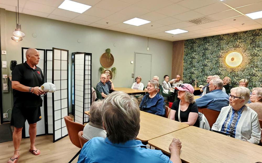 Pelinjohtaja Raimo Bragge kävi kertomassa meille päivään ja peliin liittyviä asiota. Paikalla oli myös UPV:n puheenjohtaja Jussi Elo, joka kertoi mitä kuuluu UPV:lle. Heille saimme esittää myös kysymyksiä aiheen tiimoilta. Suoritimme leikkimielisen ‘arvauksen’ puolivälin pelitilanteesta, lähimmäksi osuneille oli tiedossa Käsis-käsityökerhomme sekä UPV:lta saatuja palkintoja.