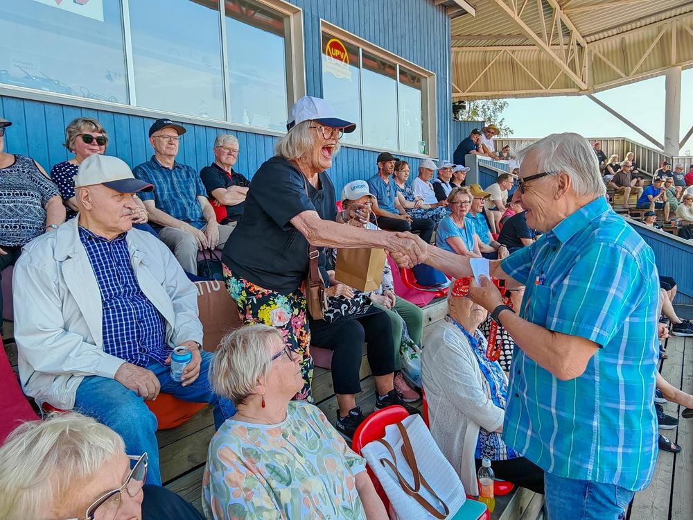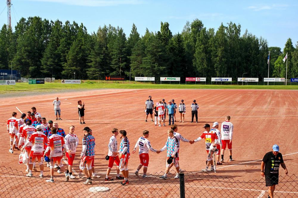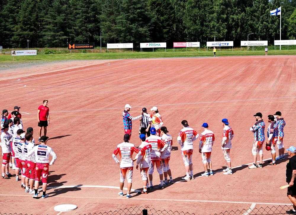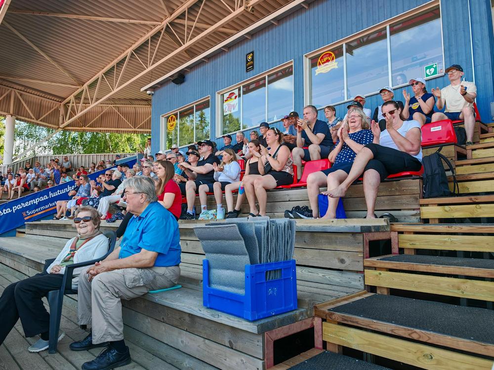 Lauantaina saimme nauttia hienosta kesäsäästä, todella lämmin sää vaikuttaa myös pelaamiseen ja pelaajiin. Enemmän nesteytystaukoja, pelaajille kramppeja, pitkiä lyöntejä... Peliaika venyikin normaalia pidempään. Katsojia oli ennätysmäärä – liekö meillä senioreilla positiivinen vaikutus asioihin :)