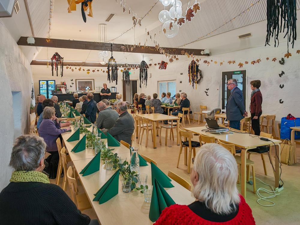 Nautimme runsaan ja maittavan lounaan sekä hyvät suklaakakku kahvit. Sen jälkeen kävimme läpi ajankohtaiset asiat ja tulevat tapahtumat. Antti kertoi Jäsenkyselyn 2025 tulokset, toivotimme uudet jäsenemme Annikki Hietikon ja Mervi Pyysalon tervetulleiksi joukkoomme. Tämän jälkeen oli vuorossa sääntömääräinen syyskokous. Mukana 29 osallistujaa/28 jäsentä.