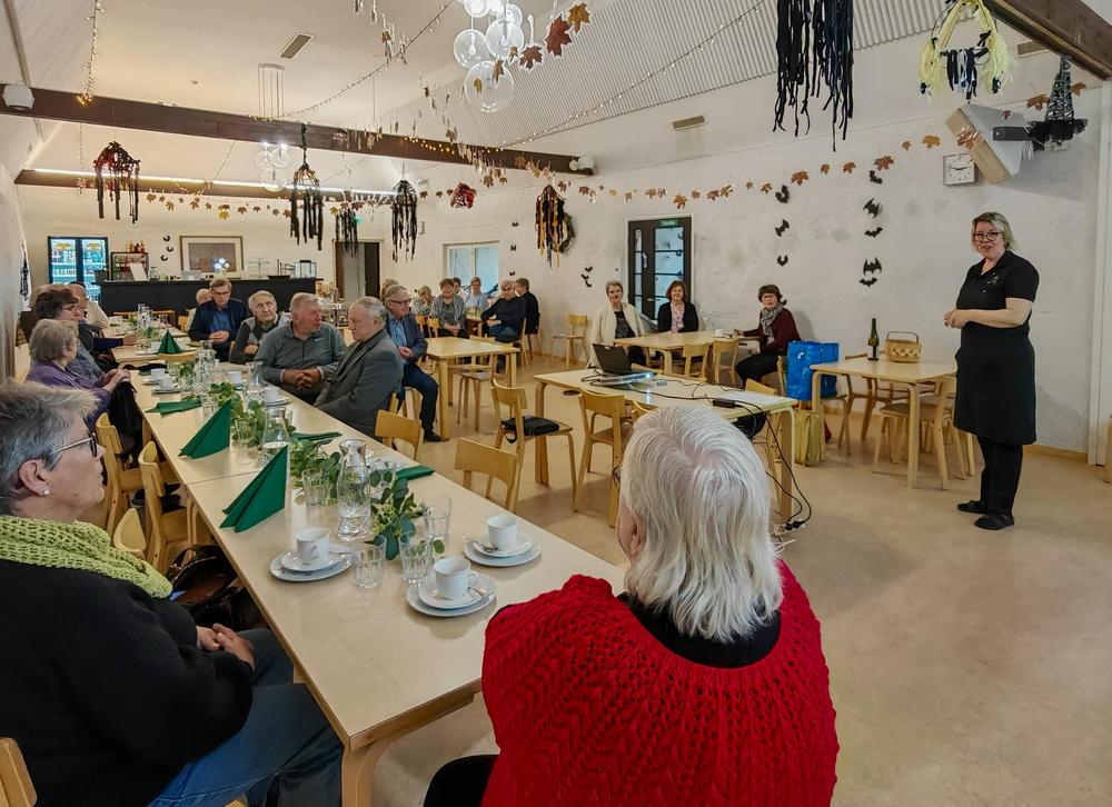 Yhdistyksen Syyskokous ja Lokakuun kk-tapaaminen järjestettiin tänä vuonna Kullaalla, Juhlatalo Unelmaan – 23.10.2025 eli Halloween tunnelmissa. Juhlatalon toiminnasta vastaava Marika Vuorsola toivotti meidät tervetulleiksi, kertoi talon historiaa ja talon toimintaa tänä päivänä - sekä miten hän on ’tähän päätynyt’ eli pitämään yllä ja kunnostamaan entistä ikäihmisten palvelutalo Kullaankotoa.
