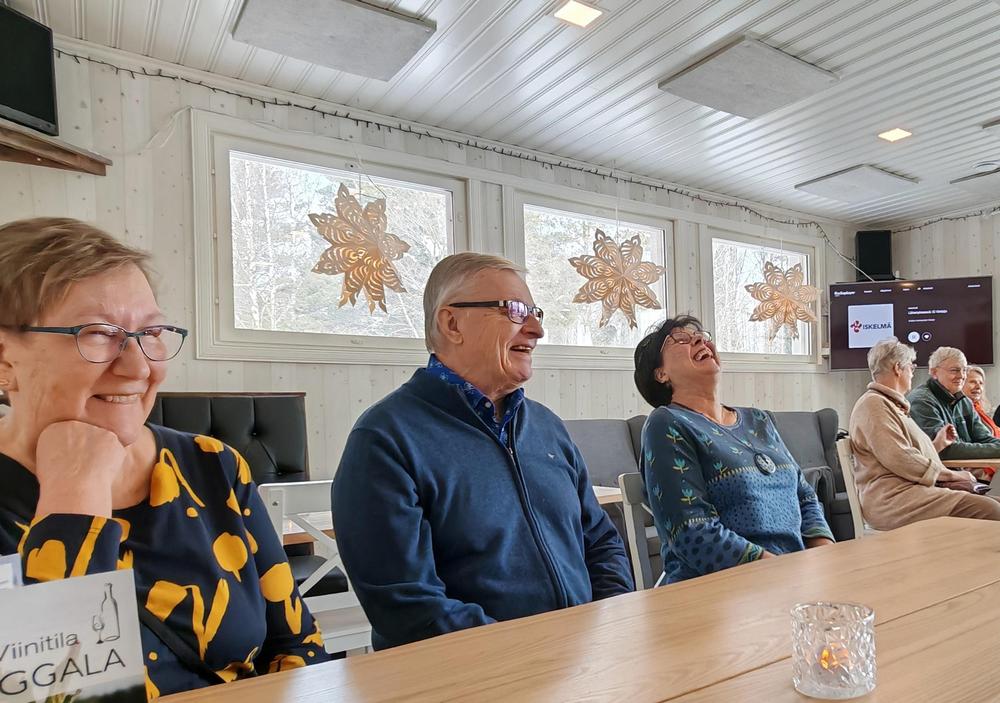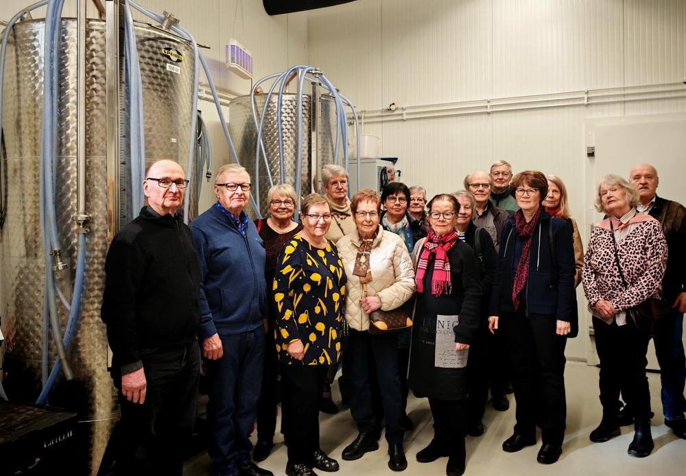 Meidät toivotti tervetulleiksi talon emäntä Sofia Latvajärvi, eloisa ja sanavalmis persoona, jonka innostava ja vauhdikas esitys piti meidät otteessaan. Hän kertoi yrityksen tarinan, miten tähän päivään on tultu. Viinimyymälä avattiin 2020 vappuna ja tuoremehuasema samana syksynä. Tätä ennen kului nelisen vuotta lupaviidakossa. Alalla on tarkka valvonta moneltakin suunnalta ja verottaja vie melkoisen osuuden heidän tuotoksistaan. Yrittämisen intoa ei heiltä kuitenkaan puutu.