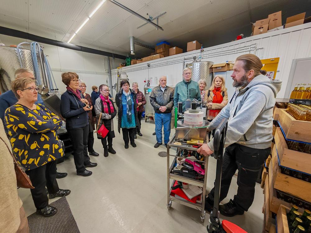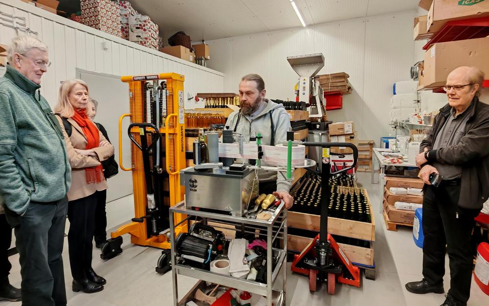 Pääsimme tutustumaan viinivalmistukseen viinehtimökierroksella Heikki-isännän opastuksella. Laitteet ja menetelmät on hyvin hallinnassa ja raaka-aineina käytetään vain kotimaisia hedelmiä ja marjoja. Suomalaista puhdasta vettä unohtamatta. Tällä hetkellä heillä on noin tuhat omena- ja kirsikkapuuta kasvamassa, tavoitteena on raaka-aineiden omavaraisuus… Ja tuotekehitys on jatkuvaa, mm. viiniköynnöksiä on kasvamassa.