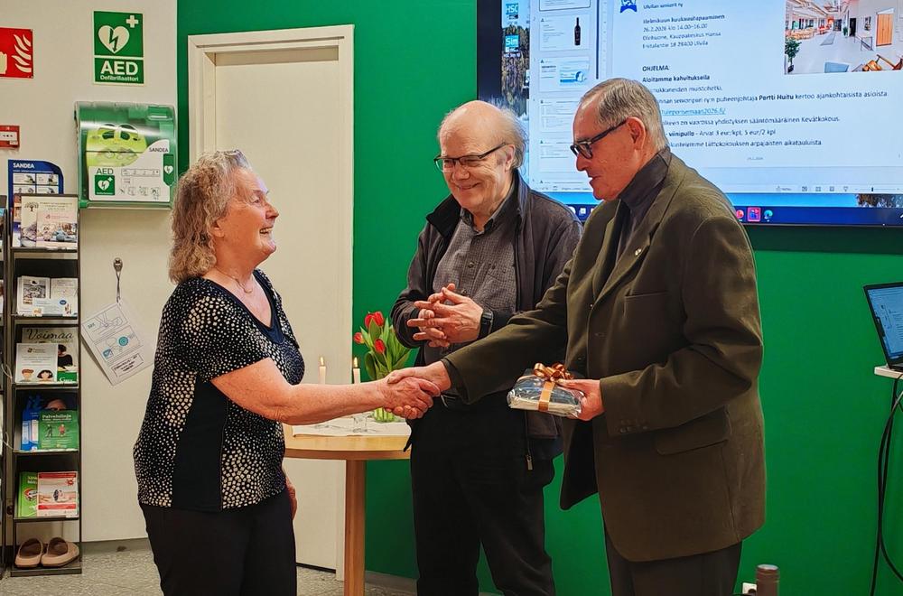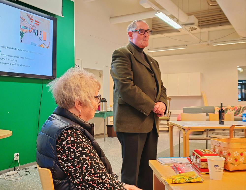 Sen jälkeen Pertti Huitu kertoi ensi kesän ’suururakasta’, johon valmistautuminen on alkanut jo parisen vuotta sitten. Kyseessä Kansallisen senioriliiton vuosikokous, jonka järjestelystä vastaa Satakunnan piiri, ts. kaikki Satakunnan senioriyhdistykset. Vuosikokous ajoittuu kolmelle päivälle 9.-11.6.2026., odotetaan noin 500 osallistujaa moninaisiin tapahtumiin. Piirin iltajuhla on tiistai-illalla Pripolissa ja liiton iltajuhla keskiviikkona SAMK:n tiloissa. Lisäksi tarjolla on monenlaista ohjelmaa, johon kukin voivat halutessaan osallistua – kohteena mm. Olkiluoto, Yyteri, Villa Mairea, kaupunkikierros… Tämän kaiken onnistumiseen ja toteuttamiseen tarvitaan meitä vapaaehtoisia talkoolaisia. Ulvilan yhdistyksen tehtävänä on arpajaisten järjestäminen.